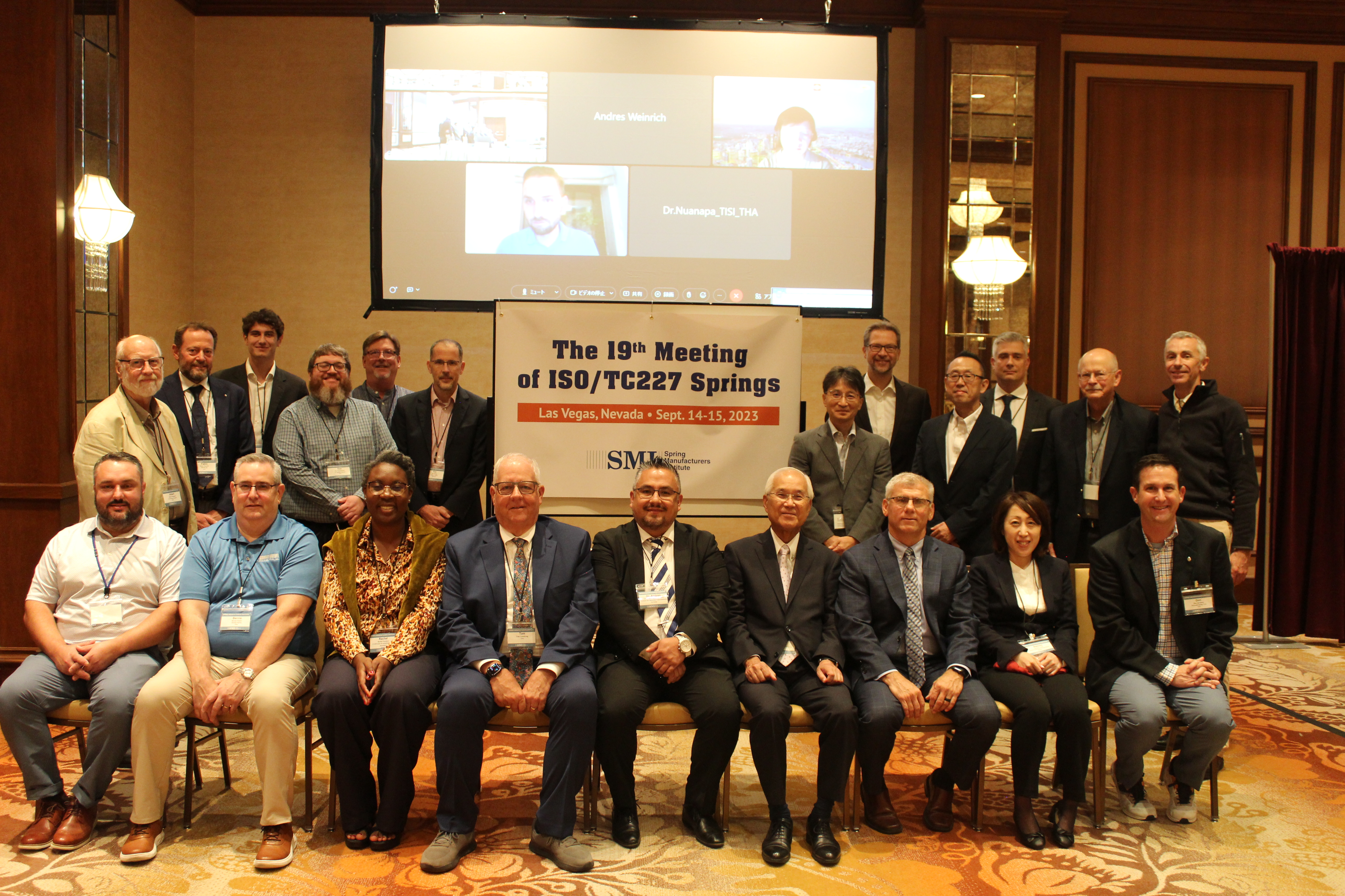 2023年(令和5年)9月14日及び15日にアメリカのラスベガスで開催された第19回国際会議は対面とWebのHybrid形式で開催され、9か国が参加しました。中国が提案し第17回Web会議からスタートした「冷間成形円筒ねじりコイルばね試験法」については、FDIS段階へ移行することが決議されました。「熱間成形圧縮コイルばね-技術仕様書(汎用)」の5年定期見直しについては、中国より改訂を支持するコメントが寄せられたため、改訂の実施を問う委員会内投票を行うことが決議されました。また、次回の国際会議は2024年(令和6年)9月13日からイタリアのミラノで開催することが決議されました。